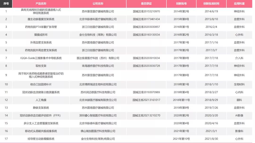 截至2022年1月13日,行業(yè)已有364個醫(yī)療器械產(chǎn)品獲得創(chuàng)新批件,其中140個創(chuàng)新產(chǎn)品獲得注冊證(見附件)。作為創(chuàng)新醫(yī)療器械和高端醫(yī)療器械優(yōu)質(zhì)服務商,奧泰康參與的項目已有17項獲得創(chuàng)新批件,其中9項產(chǎn)品獲得注冊證。