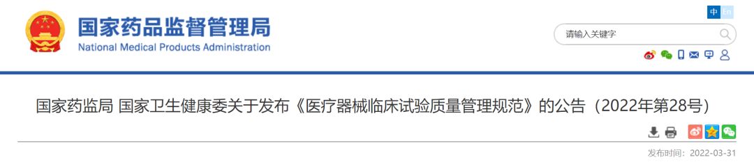 為深化醫(yī)療器械審評審批制度改革,加強(qiáng)醫(yī)療器械臨床試驗(yàn)管理,根據(jù)《醫(yī)療器械監(jiān)督管理?xiàng)l例》(國務(wù)院令第739號)及《醫(yī)療器械注冊與備案管理辦法》(市場監(jiān)管總局令第47號)、《體外診斷試劑注冊與備案管理辦法》(市場監(jiān)管總局令第48號),國家藥品監(jiān)督管理局會同國家衛(wèi)生健康委員會組織修訂了《醫(yī)療器械臨床試驗(yàn)質(zhì)量管理規(guī)范》,現(xiàn)予發(fā)布,自2022年5月1日起施行。