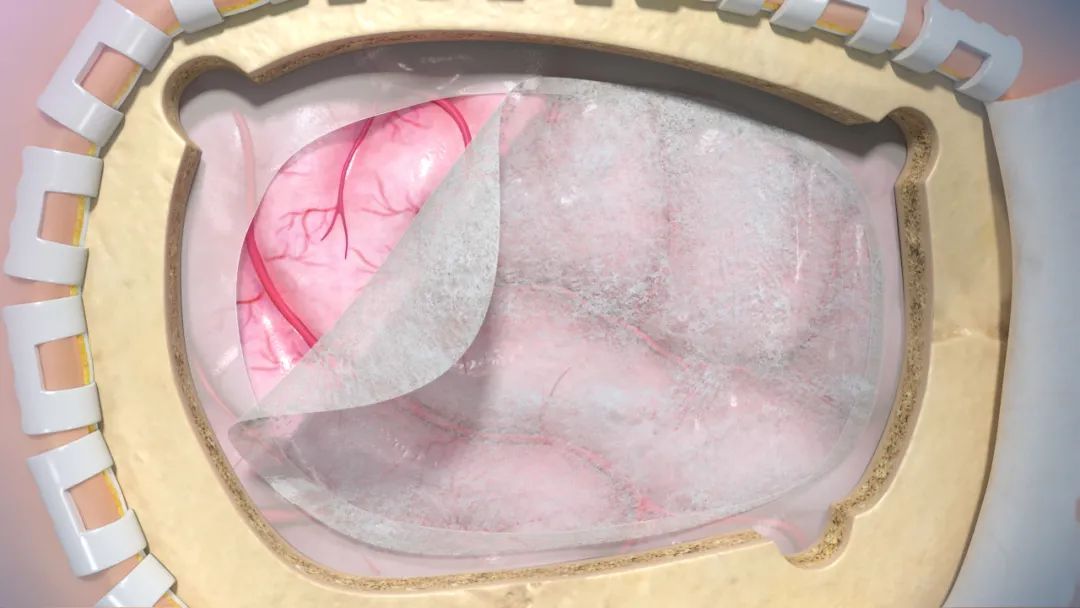 硬腦膜是保護(hù)人腦的重要結(jié)構(gòu),人工硬腦膜是用生物材料制成人體腦膜的替代物,用于顱腦疾病引起的硬腦膜或脊膜缺損的修補(bǔ),恢復(fù)腦部組織完整性。腦部組織復(fù)雜,對(duì)材料的敏感性較高,故硬腦膜補(bǔ)片材料需具備良好的生物相容性。