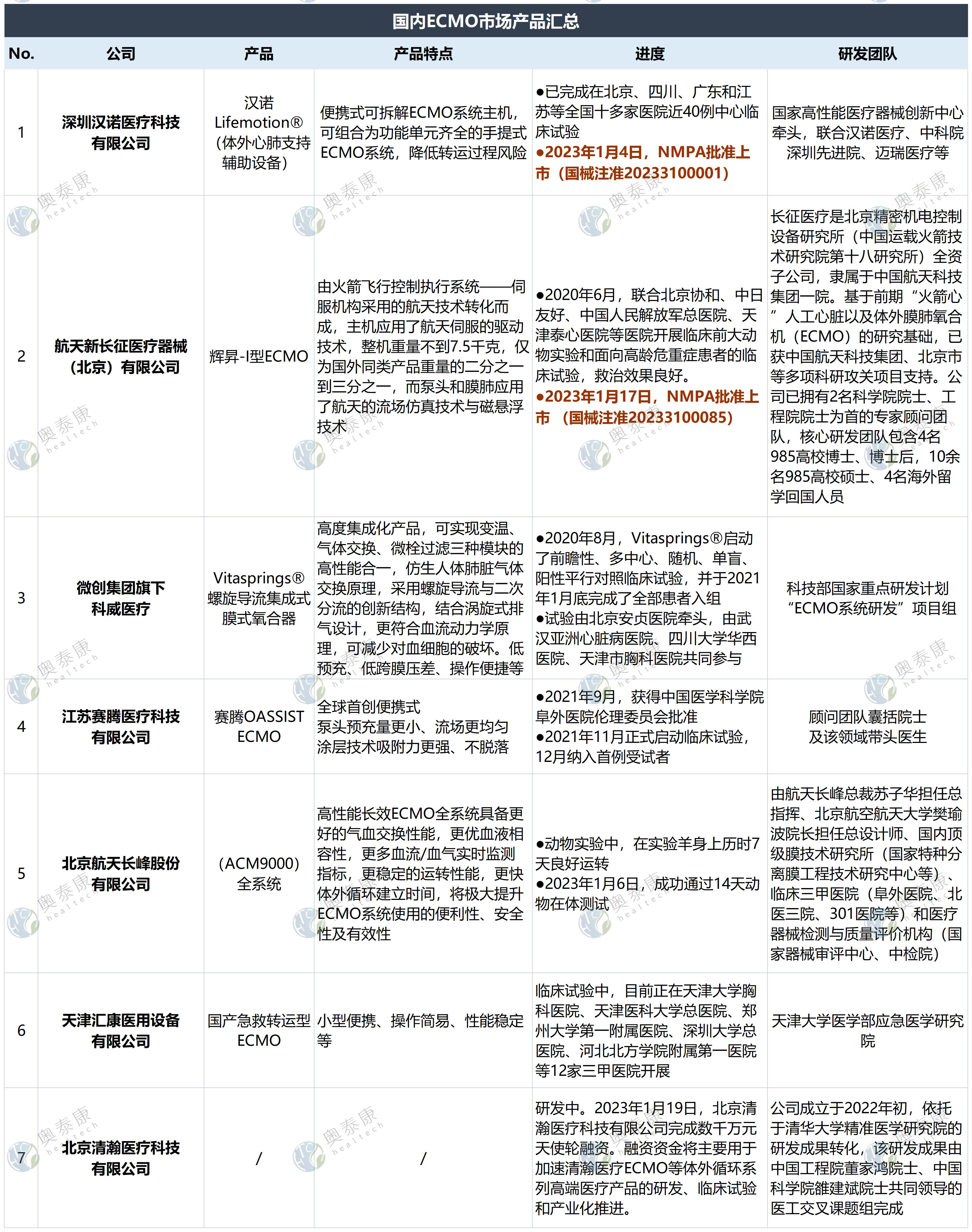 “2023年1月,國家藥監(jiān)局應(yīng)急批準(zhǔn)漢諾醫(yī)療(1.4日)和長征醫(yī)療(1.17日)的ECMO產(chǎn)品(體外肺/心肺支持輔助設(shè)備)上市,系國內(nèi)首款和第二款獲批的國產(chǎn)ECMO設(shè)備,填補(bǔ)了國內(nèi)空白。”