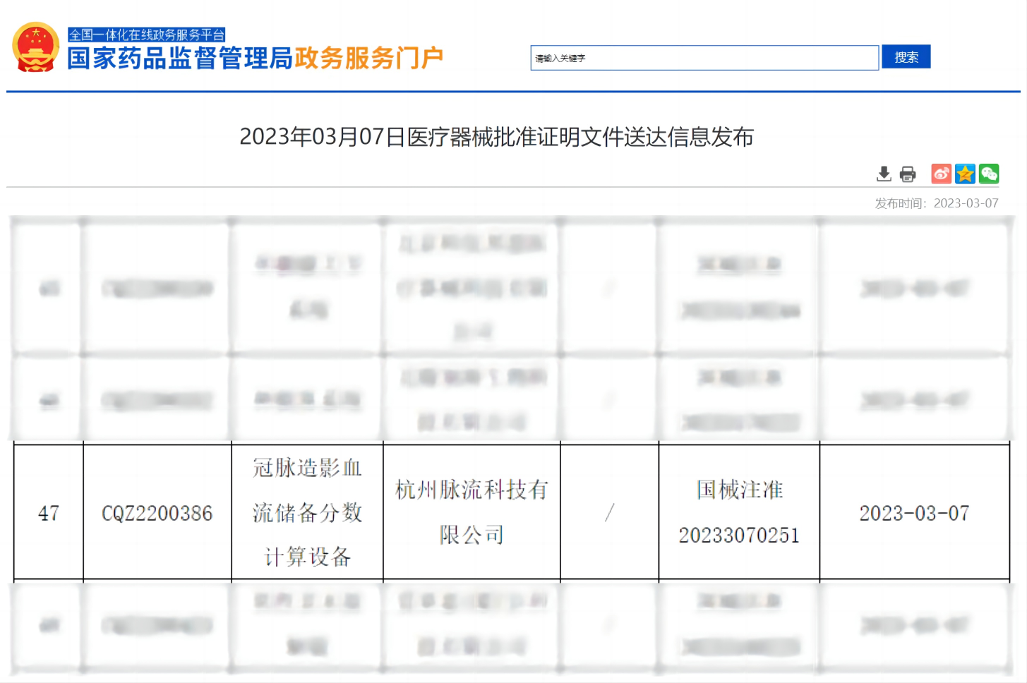 冠脈造影血流儲備分數(shù)計算設備獲證,2023年第五張三類醫(yī)療器械注冊證??MA成果發(fā)布