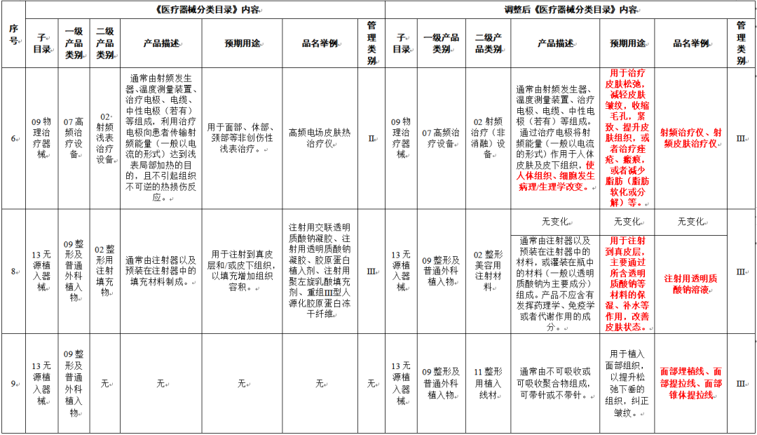 醫(yī)美注射類產(chǎn)品是國家近年來重點監(jiān)管領(lǐng)域,隨著水光針產(chǎn)品的火熱和市場的良莠不齊,產(chǎn)品濫用、超適應(yīng)癥范圍使用情況增多,國家藥監(jiān)局標管中心出臺政策規(guī)范了對于水光針產(chǎn)品的監(jiān)管標準。2022年3月30日,國家藥監(jiān)局發(fā)布實施《關(guān)于調(diào)整<醫(yī)療器械分類目錄>部分內(nèi)容的公告(2022年第30號)》,對部分醫(yī)美產(chǎn)品監(jiān)管類別作出調(diào)整,其中明確注射用透明質(zhì)酸鈉溶液按照III類器械進行監(jiān)管。政策的落地,促使生產(chǎn)廠家積極申報III類醫(yī)療器械注冊證,具有III類醫(yī)療器械注冊證的水光產(chǎn)品有望加速上市。