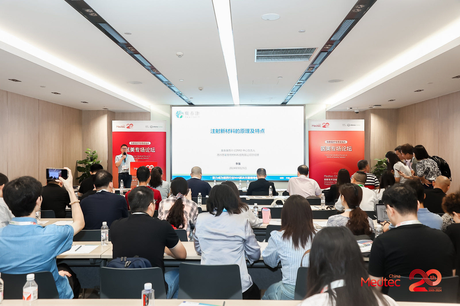 Medtec China 2024圓滿落幕,創(chuàng)新引領(lǐng),共筑發(fā)展新篇章——期待與您攜手共進(jìn)??9月27日,上海世博展覽館,Medtec China 2024暨第十八屆國際醫(yī)療器械設(shè)計與制造技術(shù)展覽會落下帷幕,這一盛會匯集了來自全球各地的頂尖企業(yè)、科研機(jī)構(gòu)及行業(yè)專家。奧泰康作為參展商受邀參加會議,在醫(yī)美專場論壇中,奧泰康蘇州CDMO中心負(fù)責(zé)人、蘇州蘇豪生物材料科技有限公司總經(jīng)理李強(qiáng)以《注射新材料的原理及特點(diǎn)》為主題進(jìn)行分享,與行業(yè)伙伴共同探索醫(yī)療器械領(lǐng)域的最新趨勢與未來發(fā)展方向。