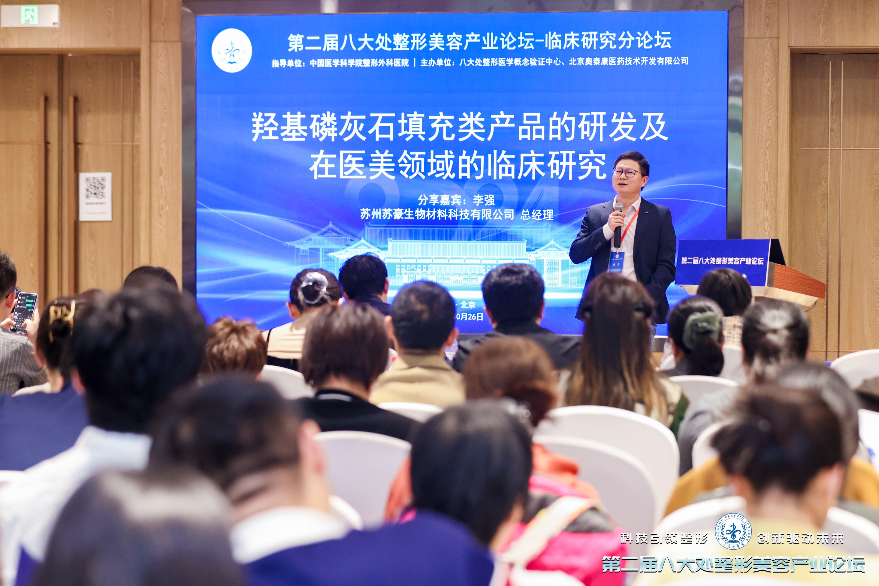 蘇州蘇豪生物材料科技有限公司總經(jīng)理李強(qiáng)通過《羥基磷灰石填充類產(chǎn)品的研發(fā)及在醫(yī)美領(lǐng)域的臨床研究》講述了羥基磷灰石的材料特性、工藝制備等,結(jié)合實(shí)際案例,闡述了羥基磷灰石的在醫(yī)美填充中的臨床應(yīng)用及未來發(fā)展方向,為行業(yè)提供了實(shí)際操作上的指導(dǎo)。