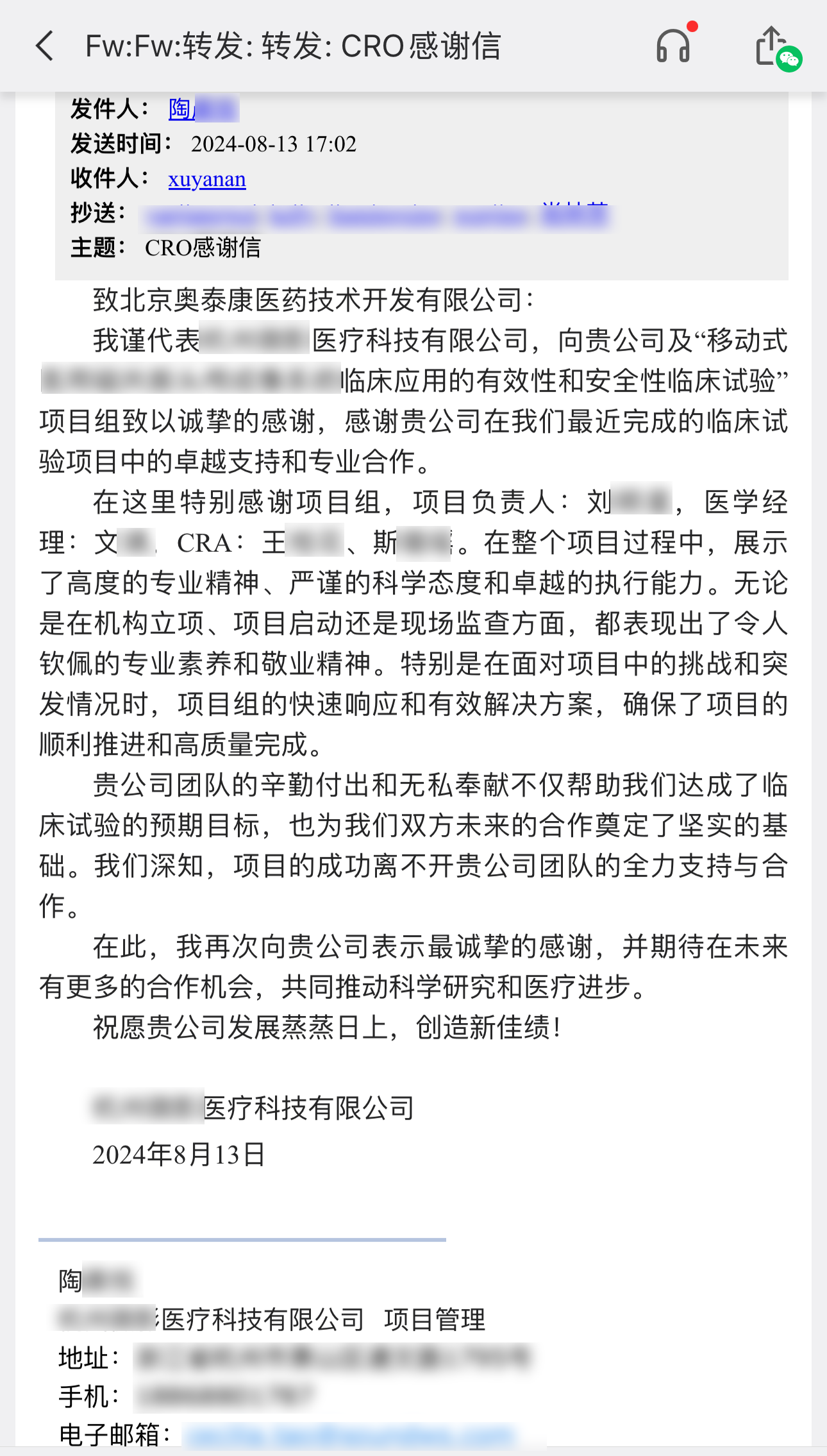 感恩有你,未來(lái)可期。在感恩節(jié)來(lái)臨之際,我們對(duì)合作伙伴的理解和支持表示感激,也對(duì)臨床項(xiàng)目組成員表示感恩,是大家每個(gè)人的共同努力使得項(xiàng)目得以順利開(kāi)展,愿我們的合作之旅,如同星辰大海,浩瀚無(wú)垠,充滿(mǎn)無(wú)限可能與希望。讓我們帶著這份感恩的心,繼續(xù)前行,共創(chuàng)更加輝煌的明天!