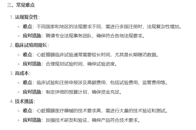 然而,每一項(xiàng)創(chuàng)新技術(shù)的臨床應(yīng)用,都離不開嚴(yán)謹(jǐn)?shù)呐R床試驗(yàn)驗(yàn)證。心臟瓣膜醫(yī)療器械的臨床試驗(yàn)和注冊申報是一個復(fù)雜且嚴(yán)格的過程,其中涉及的多個關(guān)鍵環(huán)節(jié)和潛在難點(diǎn),關(guān)于這些,看看當(dāng)下最熱門 AI工具deepseek怎么說吧~