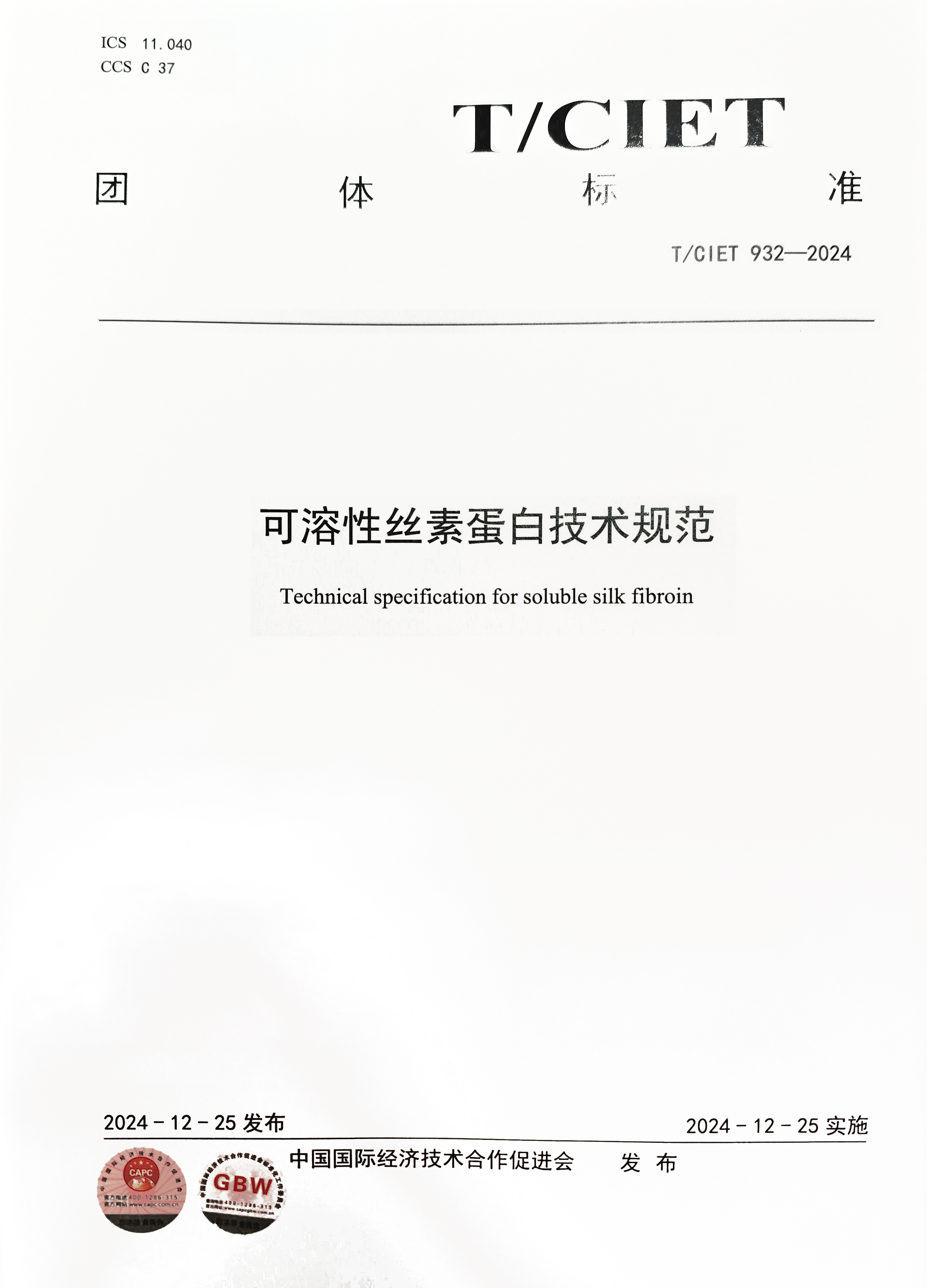 參與團(tuán)標(biāo)制定,引領(lǐng)行業(yè)標(biāo)準(zhǔn)——推動行業(yè)向規(guī)范化、高質(zhì)量發(fā)展邁進(jìn)近日,由奧泰康蘇州CDMO中心(蘇州蘇豪生物材料科技有限公司)參與起草的《可溶性絲素蛋白技術(shù)規(guī)范》(T/CIET 932-2024)團(tuán)體標(biāo)準(zhǔn)正式由中國國際經(jīng)濟(jì)促進(jìn)會發(fā)布并實施。這一標(biāo)準(zhǔn)的制定填補(bǔ)了國內(nèi)可溶性絲素蛋白領(lǐng)域技術(shù)標(biāo)準(zhǔn)的空白,為行業(yè)高質(zhì)量發(fā)展提供了權(quán)威依據(jù)。