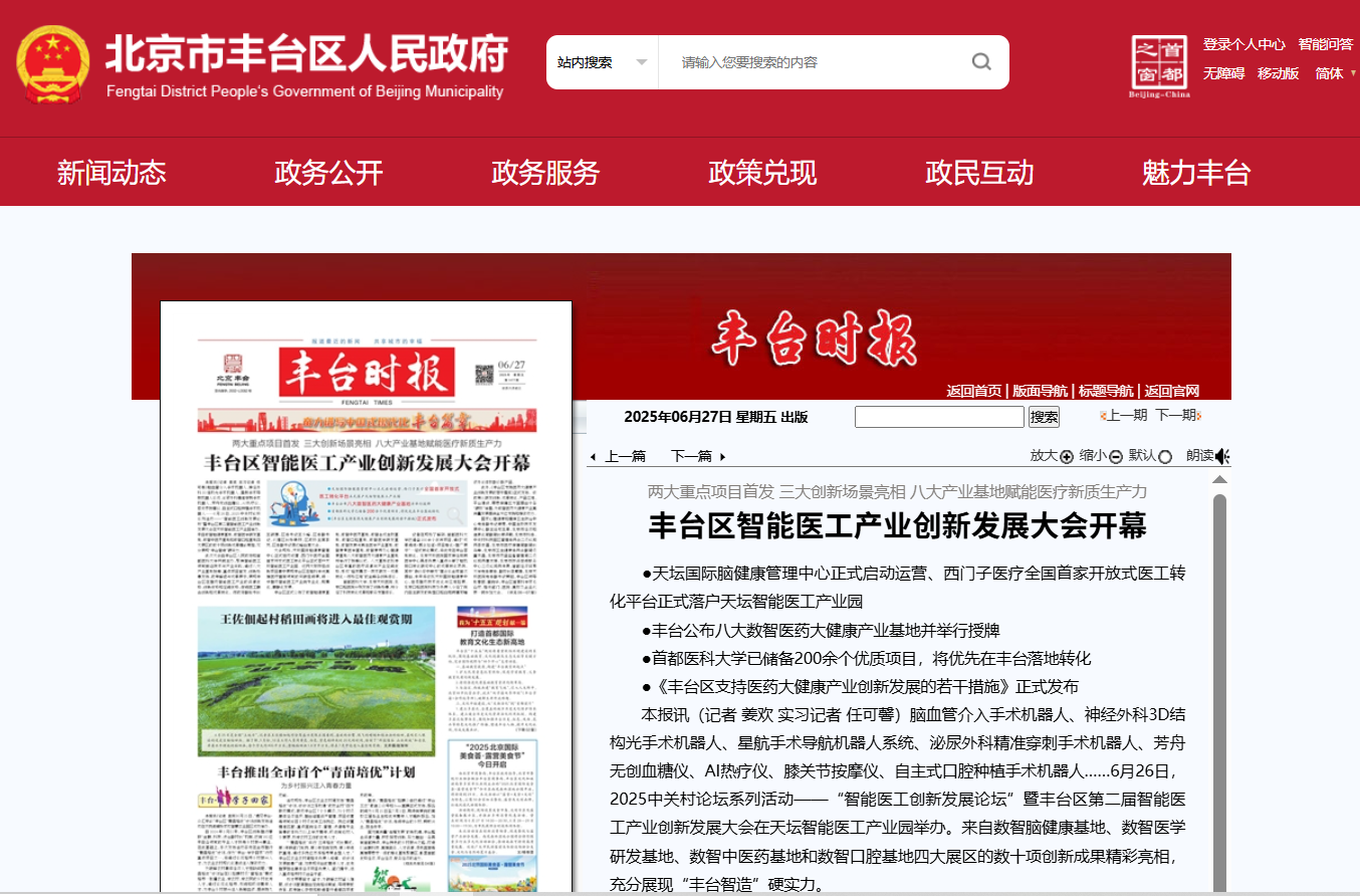 中關(guān)村論壇系列活動(dòng),奧泰康亮相「智能醫(yī)工產(chǎn)業(yè)創(chuàng)新發(fā)展大會(huì)」MA市場(chǎng)準(zhǔn)入全流程解決方案,為醫(yī)工融合賦能6月26日,由豐臺(tái)區(qū)人民政府、首都醫(yī)科大學(xué)舉辦的中關(guān)村論壇系列活動(dòng)“智能醫(yī)工創(chuàng)新發(fā)展論壇”暨豐臺(tái)區(qū)第二屆智能醫(yī)工產(chǎn)業(yè)創(chuàng)新發(fā)展大會(huì)在北京順利舉辦,此次大會(huì)聚焦智能醫(yī)工領(lǐng)域前沿技術(shù)與產(chǎn)業(yè)實(shí)踐,通過(guò)八大產(chǎn)業(yè)基地授牌、重點(diǎn)項(xiàng)目首發(fā)、創(chuàng)新場(chǎng)景發(fā)布、政策解讀與成果展示,展現(xiàn)豐臺(tái)區(qū)在推動(dòng)智能醫(yī)工產(chǎn)業(yè)的資源優(yōu)勢(shì)、創(chuàng)新優(yōu)勢(shì)和空間優(yōu)勢(shì),促進(jìn)醫(yī)工融合創(chuàng)新和成果轉(zhuǎn)化。北京市政府副秘書長(zhǎng)王穎捷,區(qū)委書記王少峰,區(qū)委副書記、代理區(qū)長(zhǎng)張艷林,區(qū)政協(xié)主席李嵐,區(qū)委副書記蔣達(dá)峰,首席科學(xué)家毛山宏等領(lǐng)導(dǎo)出席會(huì)議。