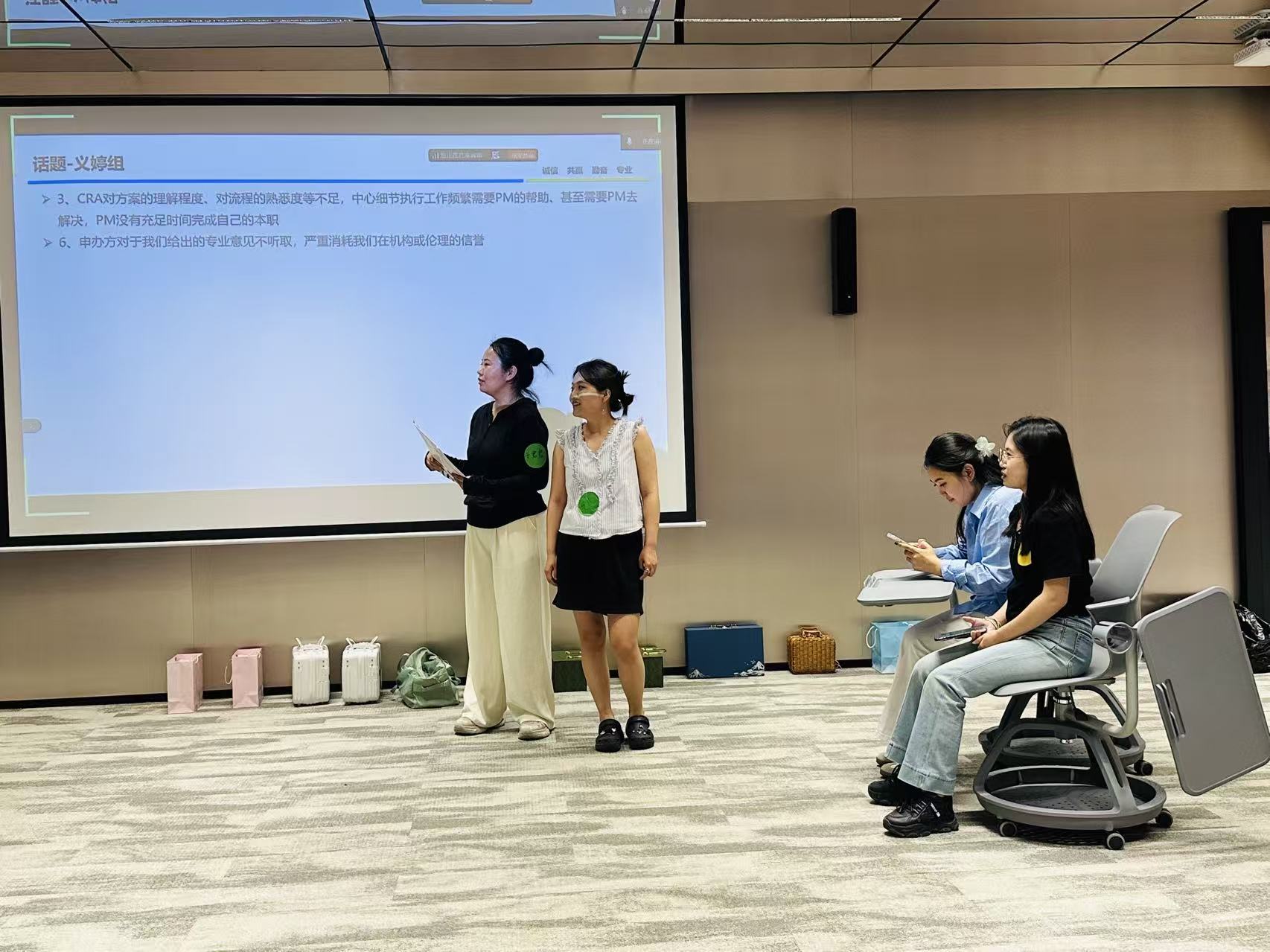 有效的溝通是團隊協(xié)作的基石。本次培訓引入了“非暴力溝通”理念,通過情景模擬與案例分析,幫助學員掌握傾聽、表達與反饋的技巧,減少人際沖突,提升團隊凝聚力。通過不同情節(jié)的生動演繹,團隊成員詮釋出日常工作中的各種棘手問矛盾,許多學員表示,這一環(huán)節(jié)讓他們重新審視了溝通方式,學會了如何以更平和、高效的方式解決工作中的矛盾。這不僅是一種技巧,更是一種修行,它能幫助我們化解與研究者、受試者或團隊成員間的潛在沖突,營造和諧、高效的工作氛圍。